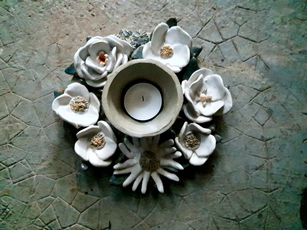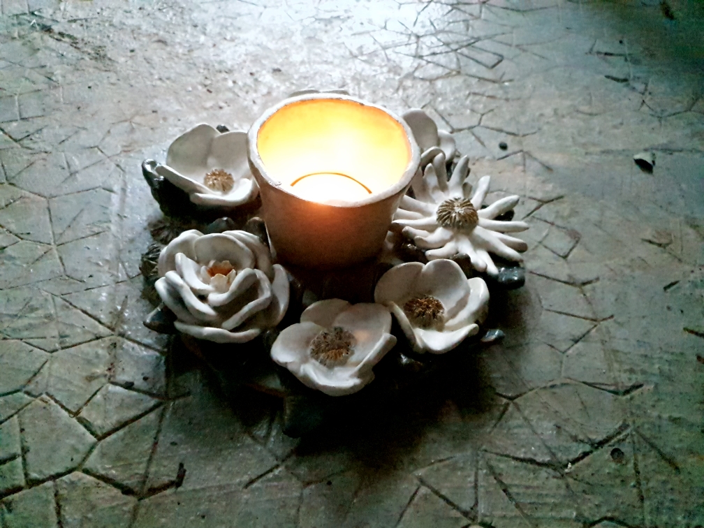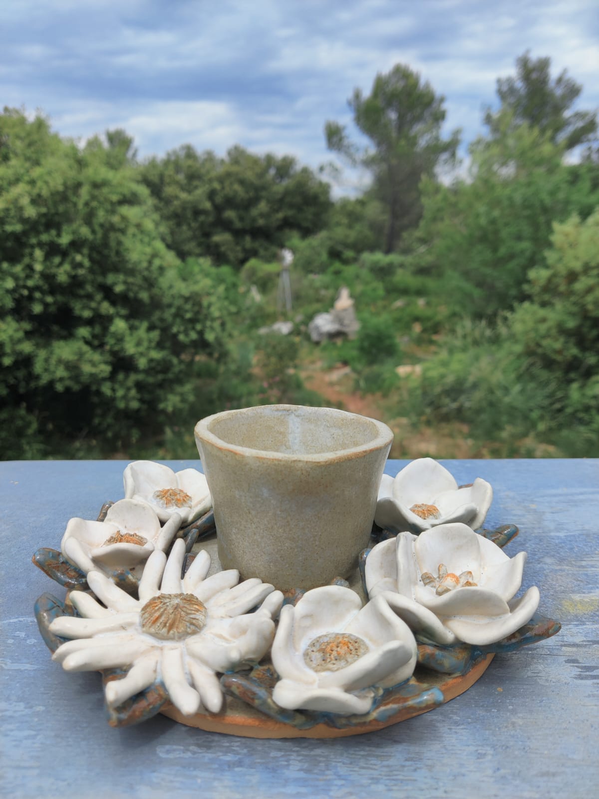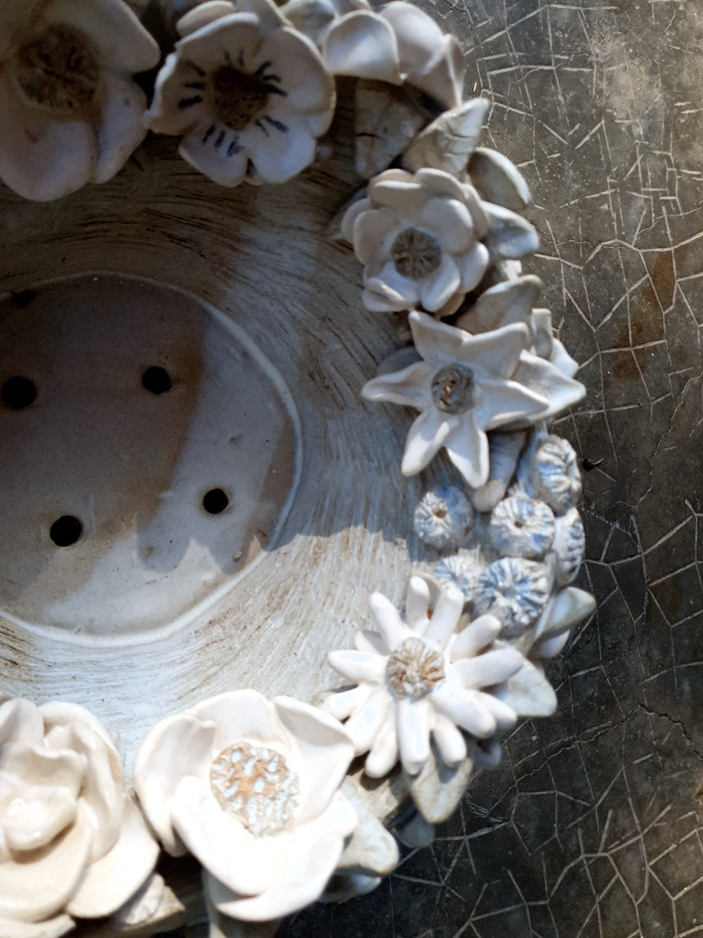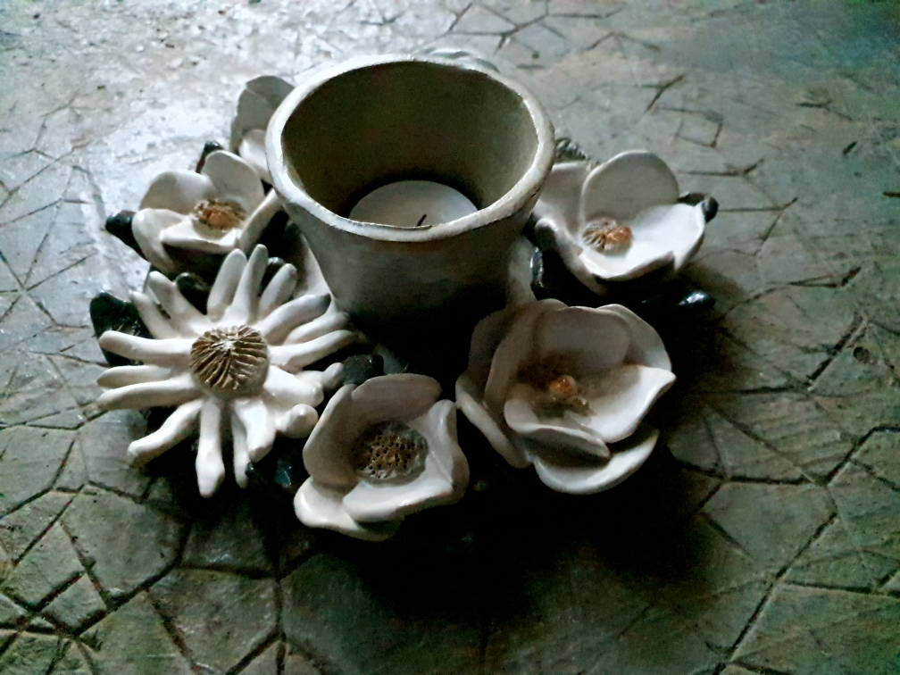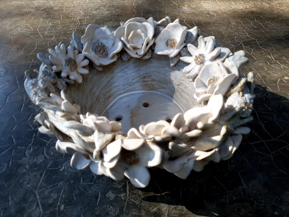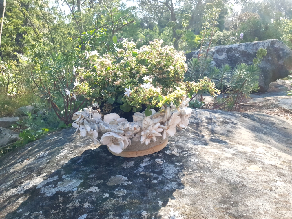 Les céramiques florales sont réalisées en grès et cuites à 1200°. Résistantes au gel, elles peuvent rester à l'extérieur toute l'année. Dans les lieux publiques, elles peuvent être scellées avec du mastic-colle pour tuiles.