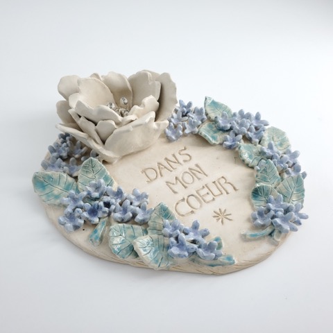 Les céramiques florales sont réalisées en grès et cuites à 1200°. Résistantes au gel, elles peuvent rester à l'extérieur toute l'année. Dans les lieux publiques, elles peuvent être scellées avec du mastic-colle pour tuiles.